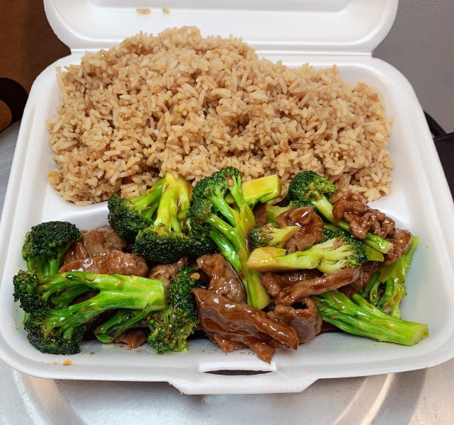 Includes beef, chicken, shrimp, and veg