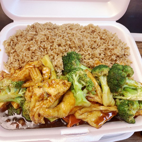 Tofu with fresh veg. in spicy Hunan sauce